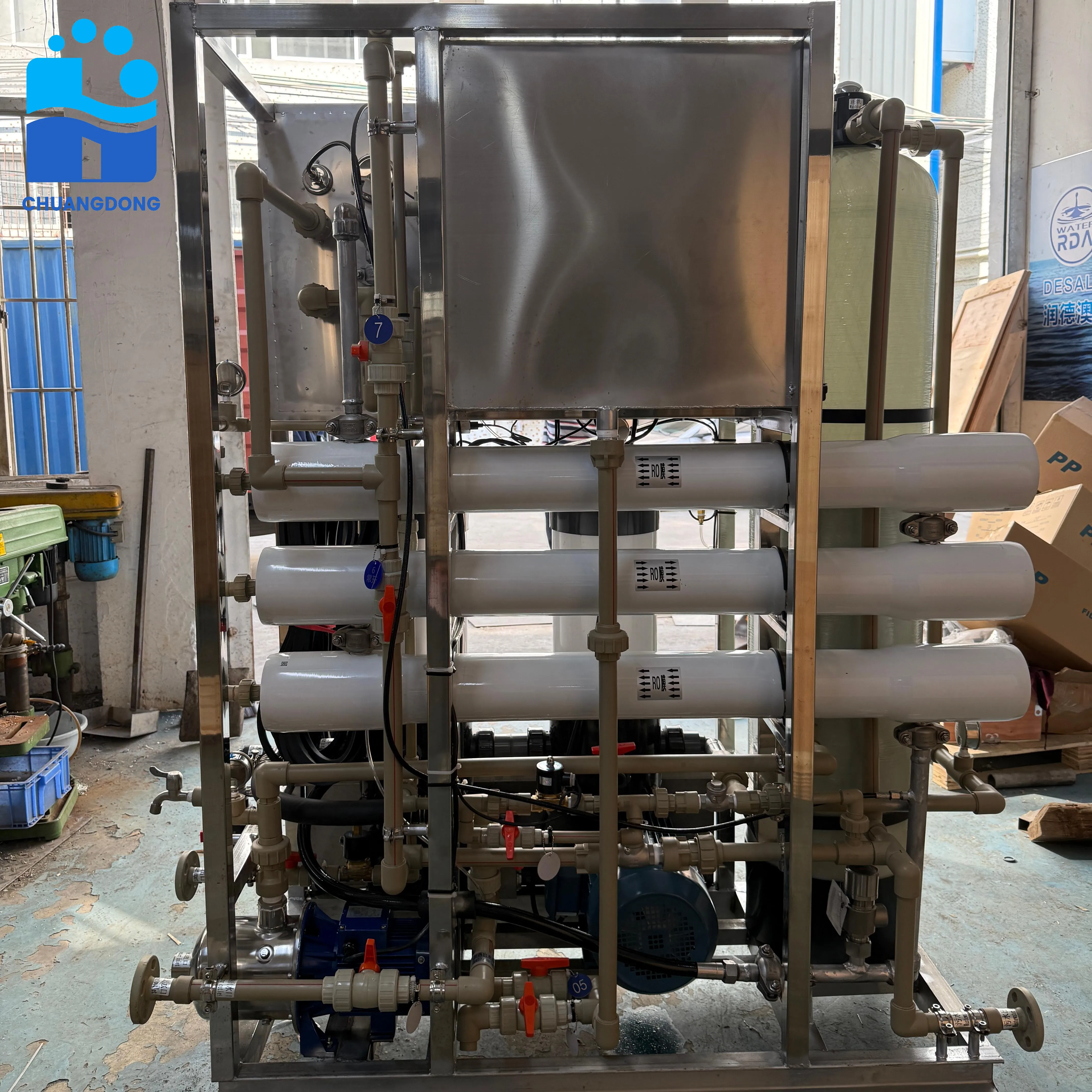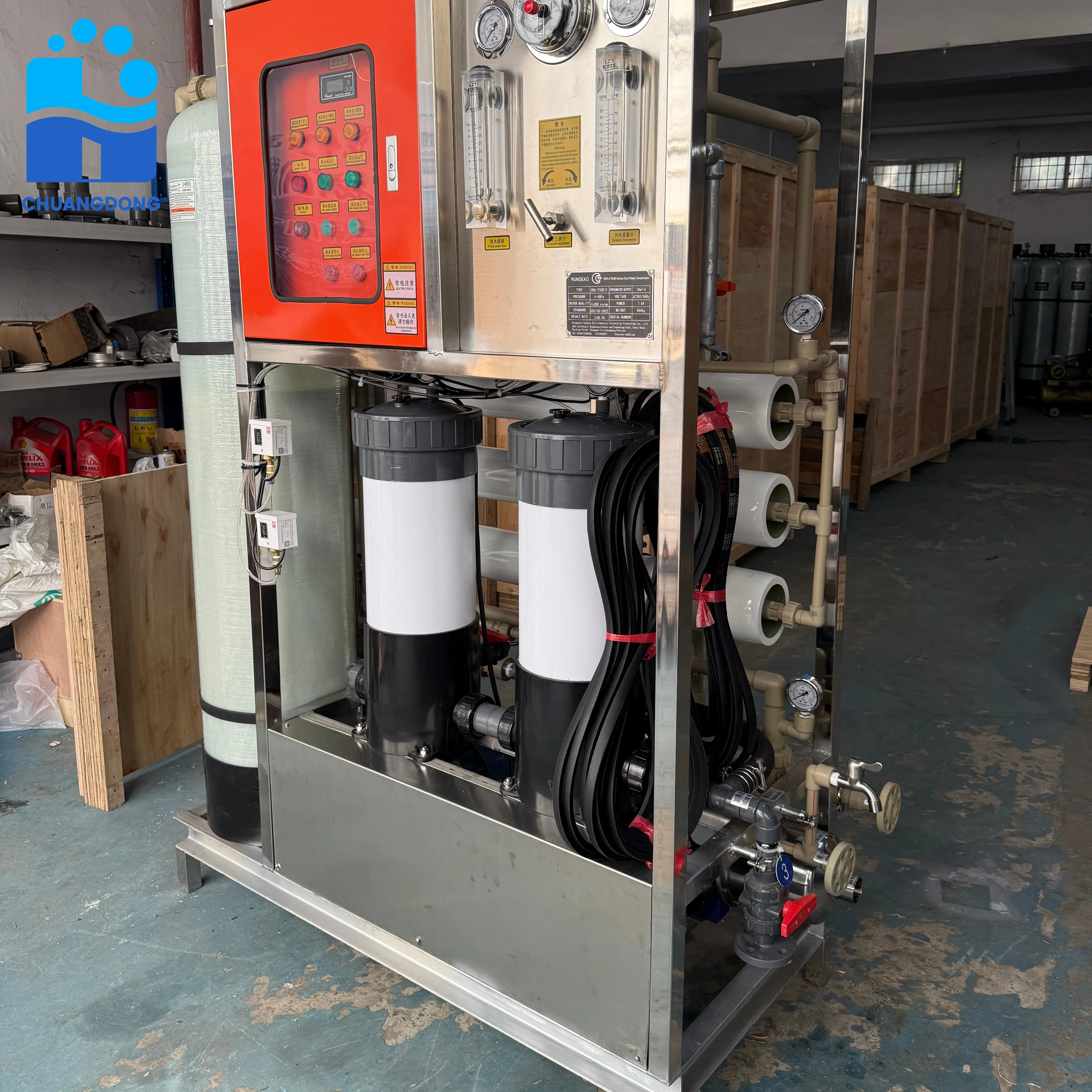 The comprehensive control system provides real-time monitoring and automatic adjustment of critical operational parameters. Advanced sensors continuously track water quality, pressure levels, and flow rates to maintain optimal performance while protecting system components. Remote monitoring capabilities allow operators to track system status and receive alerts from off-site locations, enabling proactive maintenance and troubleshooting.