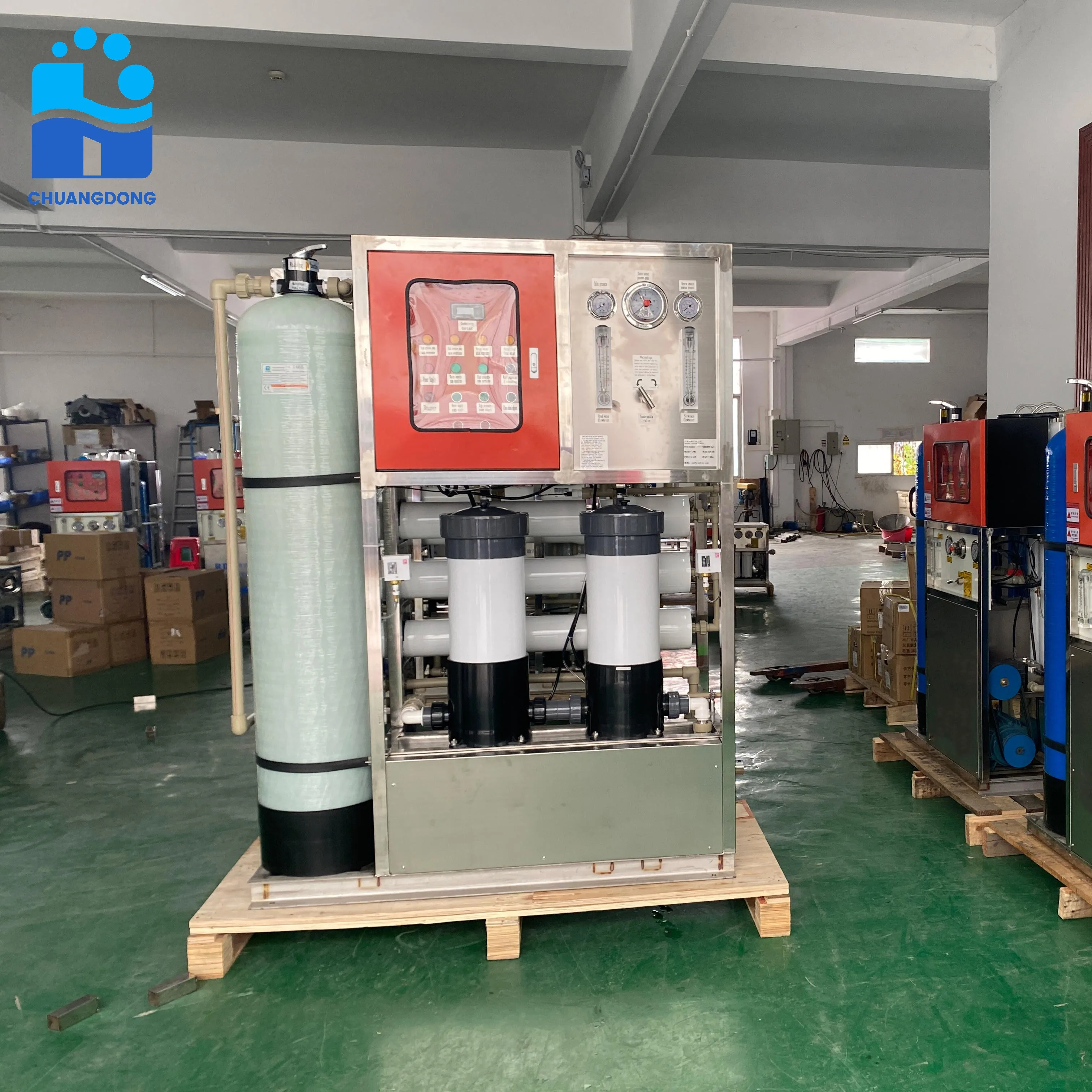 This industrial-grade desalination plant utilizes energy recovery devices to optimize power consumption while maintaining consistent output quality. The integrated control system monitors critical parameters including feed water quality, membrane performance, and product water specifications to ensure optimal operation across varying conditions. Automated cleaning cycles and preventive maintenance protocols extend membrane lifespan while reducing operational downtime, making this system ideal for continuous water production requirements.